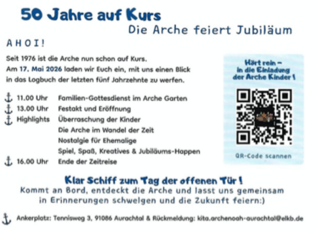 Einladung zum 50. Jubiläum des Kindergarten Arche Noah