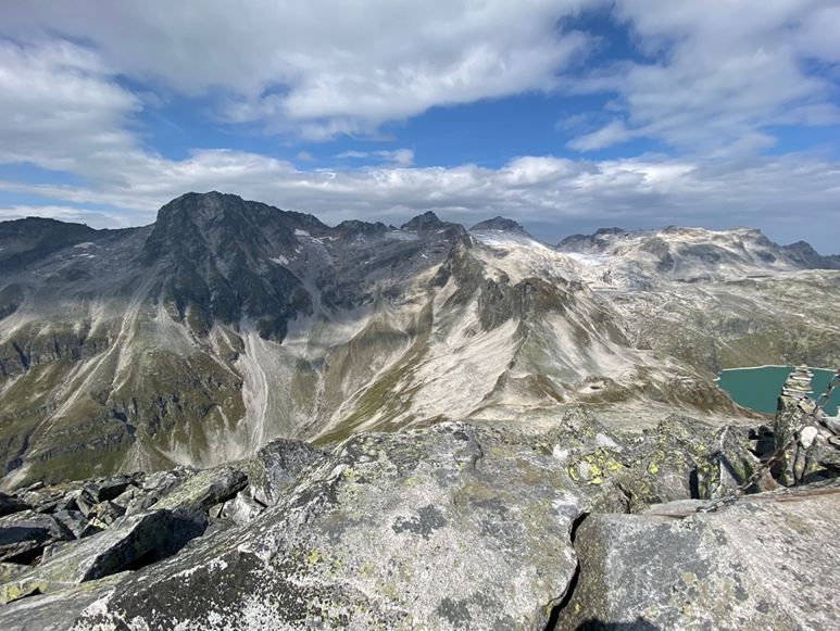 Nach Bezug der Zimmer wurde die herrliche Lage des Hotels inmitten beeindruckender Bergkulisse und das türkis schimmernde Wasser des Weißsees bewundert. Da die Wetterprognose für den nächsten Tag noch bestes Wanderwetter versprach, wurde als erstes Ziel der 2762m hohe Medelzkopf vereinbart. Die sternklare und dunkle Bergnacht war wie geschaffen, um das Smartteleskop aufzubauen und ein geeignetes Himmelsobjekt war mit dem Rosettennebel im Sternbild Einhorn schnell gefunden.